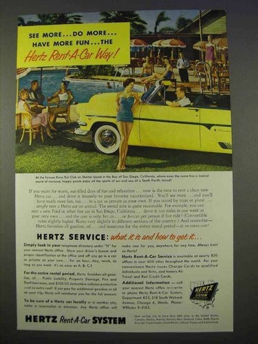 1955 Hertz Rent A Car Ad Kona Kai Club San Diego Ca Ebay